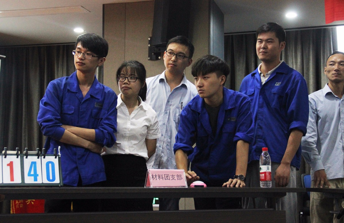 隨后進(jìn)行《紅色精神知多少》競答比賽,分別來自行政、材料、特鋼、制品團(tuán)支部的四支比賽戰(zhàn)隊(duì),積極參與,爭先搶答各類團(tuán)史黨史知識題。經(jīng)過激烈角逐,最終行政團(tuán)支部獲第一名,制品團(tuán)支部獲第二名,材料、特鋼團(tuán)支部獲第三名。