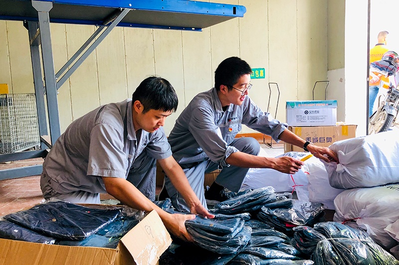 2020年9月30日,恒洋熱電的員工們合力將一袋袋衣物檢查、分揀、打包、裝車,并指派孫曉崗和金冰力兩位同志為代表,前往沈蕩鎮(zhèn)郵政儲蓄快遞公司將這份滿滿的愛寄出。2020年10月初,恒洋熱電收到了阜新恒泰機械有限責任公司已簽收快件的短信提醒,同時也收到了阜新恒泰機械有限責任公司員工穿上這批工作服后的照片。