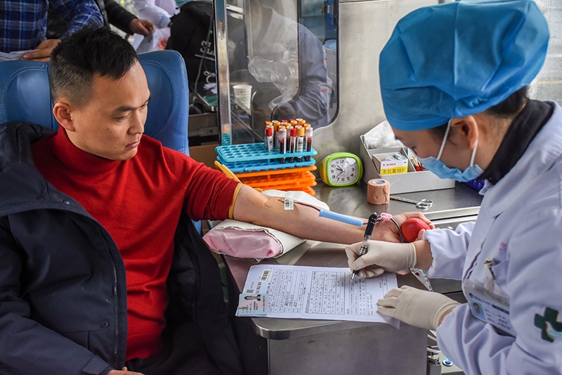 愛心獻(xiàn)血活動(dòng)當(dāng)天,天空中灑落著點(diǎn)點(diǎn)雨滴,寒冷的空氣卻沒有阻擋愛心人士的前來獻(xiàn)血的腳步?,F(xiàn)場共有近百人前來登記獻(xiàn)血,雖然有些人因?yàn)樽陨砩眢w條件不符合獻(xiàn)血要求未能如愿獻(xiàn)血,但是他們紛紛表示將管理好自己的健康,下次再獻(xiàn)血。