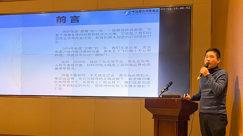會(huì)議的最后,中達(dá)集團(tuán)總經(jīng)理徐見平對(duì)中達(dá)進(jìn)出口表示了充分肯定,在2020年疫情大環(huán)境下能團(tuán)結(jié)一心、共渡難關(guān),通過奮斗實(shí)現(xiàn)了年初制定的各項(xiàng)目標(biāo)。同時(shí),徐總也對(duì)中達(dá)進(jìn)出口年輕又充滿活力的團(tuán)隊(duì)們寄予了新的希望,徐總鼓勵(lì)年輕團(tuán)隊(duì)們要保持好奇心,保持勇于創(chuàng)新的精神,在對(duì)自身有充分認(rèn)識(shí)的前提下,充滿自信,不斷奮進(jìn)!