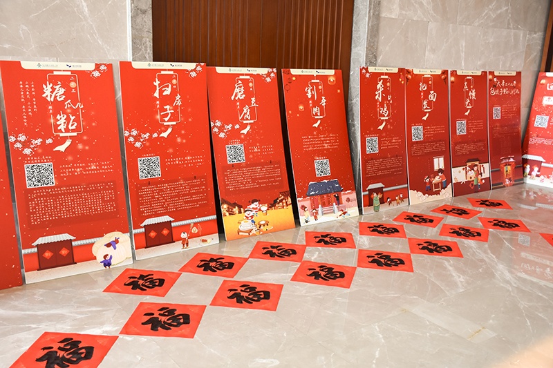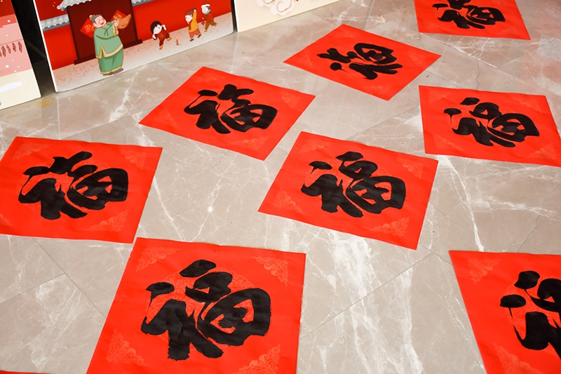 為營(yíng)造吉祥如意的春節(jié)氛圍,弘揚(yáng)向上向善的道德風(fēng)尚,把社會(huì)主義核心價(jià)值觀(guān)傳播到基層,把吉祥祝福送到千家萬(wàn)戶(hù),集團(tuán)工會(huì)特別邀請(qǐng)了海鹽縣張?jiān)獫?jì)圖書(shū)館,聯(lián)合海鹽縣書(shū)法家協(xié)會(huì)來(lái)到中達(dá)集團(tuán)現(xiàn)場(chǎng),為中達(dá)員工們寫(xiě)春聯(lián)、福字。與此同時(shí),張?jiān)獫?jì)圖書(shū)館還將圖書(shū)館數(shù)字資源推廣服務(wù)一并帶入企業(yè),在集團(tuán)大廳陳列了“春節(jié)民俗展”,將春節(jié)的喜慶和書(shū)香氣息一并送到員工身邊。