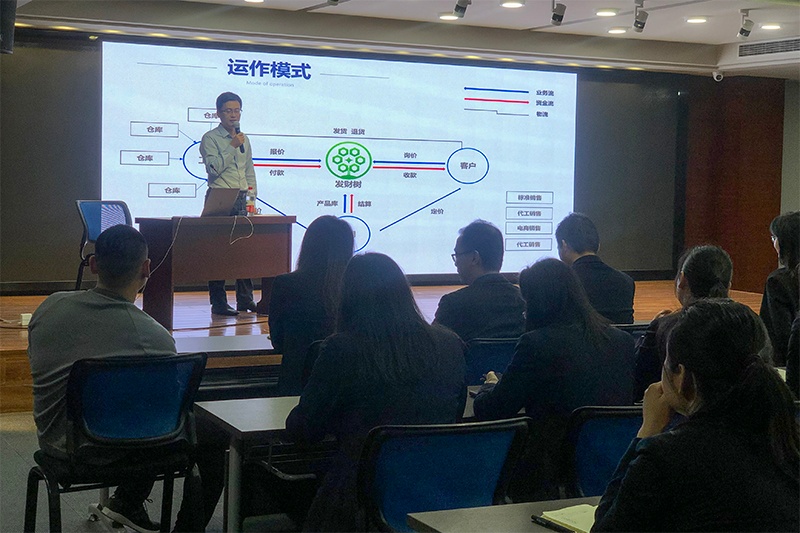 會(huì)上,集團(tuán)信息部主任王建龍向大家進(jìn)行了背景闡述,使大家對(duì)“發(fā)財(cái)樹”平臺(tái)項(xiàng)目的來(lái)源和項(xiàng)目啟動(dòng)的必要性有了一定了解?!鞍l(fā)財(cái)樹”寓意事業(yè)蒸蒸日上,業(yè)績(jī)?cè)絹?lái)越好,是集團(tuán)、公司領(lǐng)導(dǎo)對(duì)中達(dá)國(guó)際的殷切期望。王建龍還講解了平臺(tái)的運(yùn)作模式,引領(lǐng)大家對(duì)“工廠、公司、客戶、系統(tǒng)”四者之間相互流轉(zhuǎn)內(nèi)的過(guò)程進(jìn)行了解。