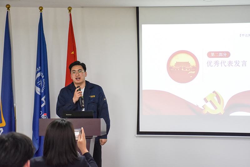 中達貨架黨支部組織委員張偉發(fā)表了感言,他希望廣大青年們積極投入到公司建設(shè)中來,充分發(fā)揮自己年輕人的力量,勇于創(chuàng)新,做一名有為青年。