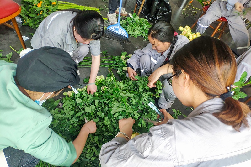 5月9日,花材如期而至。從云南空運(yùn)過來的花材,經(jīng)過了2-3天的長(zhǎng)途跋涉,均處在脫水的狀態(tài),園藝社的小伙伴們?cè)诓寤ɡ蠋煹闹笇?dǎo)下,一起對(duì)花材進(jìn)行整理、醒花、養(yǎng)花。