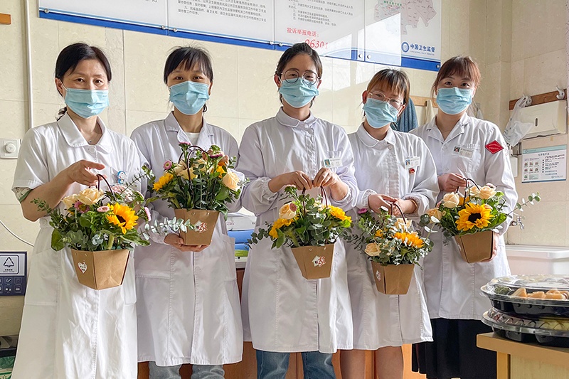 上午10點(diǎn),一份份精美的甜品、水果拼盤以及絢麗的花籃帶著恒洋人深深的祝福來到了沈蕩康寧醫(yī)院護(hù)士小姐姐們的手中。