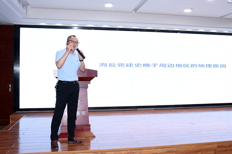 活動最后,集團文化顧問朱逸平為全體團員分享了一堂精彩的團課《海鹽黨史和千年長山河》,帶全體團員回顧了海鹽的黨史和長山河的開挖歷史,展現(xiàn)了海鹽早期黨員和人民群眾的奮斗歷史。