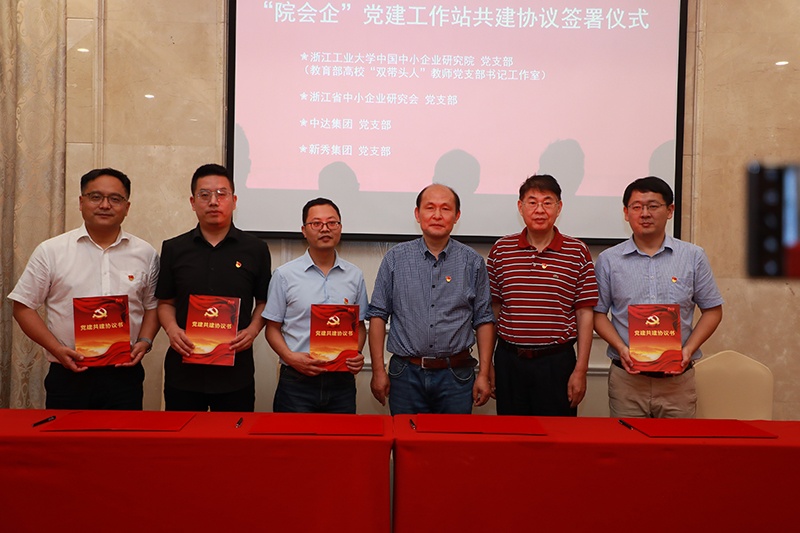 在下午的浙江省中小企業(yè)研究會換屆大會上,董事長秘書、行政黨支部宣傳委員董飛作為公司黨支部代表與浙江工業(yè)大學(xué)中國中小企業(yè)研究院黨支部、浙江省中小企業(yè)研究會黨支部共同簽署了黨建共建協(xié)議,在組織建設(shè)互促、黨員干部互動(dòng)、黨建載體互用、結(jié)對幫扶互助等方面開展黨建共建工作,并重點(diǎn)圍繞“十個(gè)一”(即一個(gè)平臺、一基地、一機(jī)制、一交流、一黨課、一現(xiàn)場、一座談、一促進(jìn)、一破解、以服務(wù))做出成效。