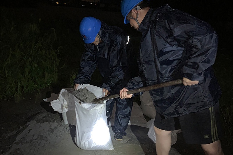 在恒洋熱電,除了做好常規(guī)抗臺工作部署外,公司黨支部還組織全體黨員24小時待命,實時關(guān)注臺風(fēng)動態(tài)并協(xié)助值班人員做好抗臺搶險工作。在得知這次臺風(fēng)有可能在嘉興附近二次登陸后,公司李忠華、常志良、顧奇等幾名黨員主動請命,冒著大雨,頂著狂風(fēng),帶上手電前往填裝數(shù)十個沙袋,第一時間在廠區(qū)碼頭筑起了一道安全堤壩,以實際行動踐行了黨員沖鋒在一線的責(zé)任擔(dān)當(dāng)!