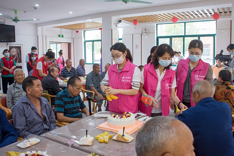 在九九重陽節(jié)之際,為深化黨史學(xué)習(xí)教育,弘揚(yáng)中華民族尊老、愛老、敬老、助老的傳統(tǒng)美德,進(jìn)一步推動新時代文明實(shí)踐走深走實(shí),志愿服務(wù)活動常態(tài)長效,10月14日下午,中達(dá)集團(tuán)及各子公司黨團(tuán)員青年、志愿者們來到百步銀康養(yǎng)護(hù)院,為這里的老人舉辦集體生日,一起唱生日歌、吃蛋糕。