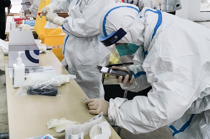 志愿者們在核酸檢測現(xiàn)場進(jìn)行秩序引導(dǎo)、協(xié)助登記等協(xié)助工作。有的為不會(huì)使用微信小程序掃碼登記的居民提供指導(dǎo)幫助,有的配合醫(yī)生護(hù)士做好掃碼人員登記,有的協(xié)助特殊人群采樣等等。一米線、隔離帶、測體溫、查雙碼、信息登記,從入口到出口志愿者們幫助居民安排得井然有序,保證了各卡點(diǎn)檢測工作高效進(jìn)行。志愿者們紛紛表示,“雖然我們不是醫(yī)生、護(hù)士,但我們應(yīng)該盡自己的綿薄之力,和大家一起打贏這場疫情防控戰(zhàn)!”