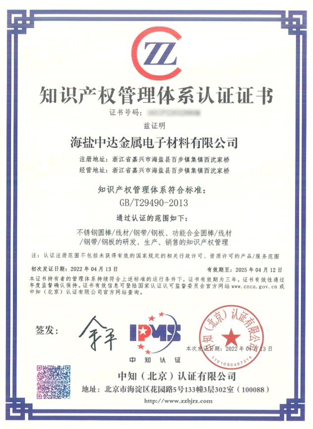 最終經(jīng)審核組老師們一致決定,中達材料知識產(chǎn)權(quán)管理體系一階段審核順利通過。近日,中知(北京)認證有限公司為中達材料頒發(fā)了知識產(chǎn)權(quán)管理體系認證證書。