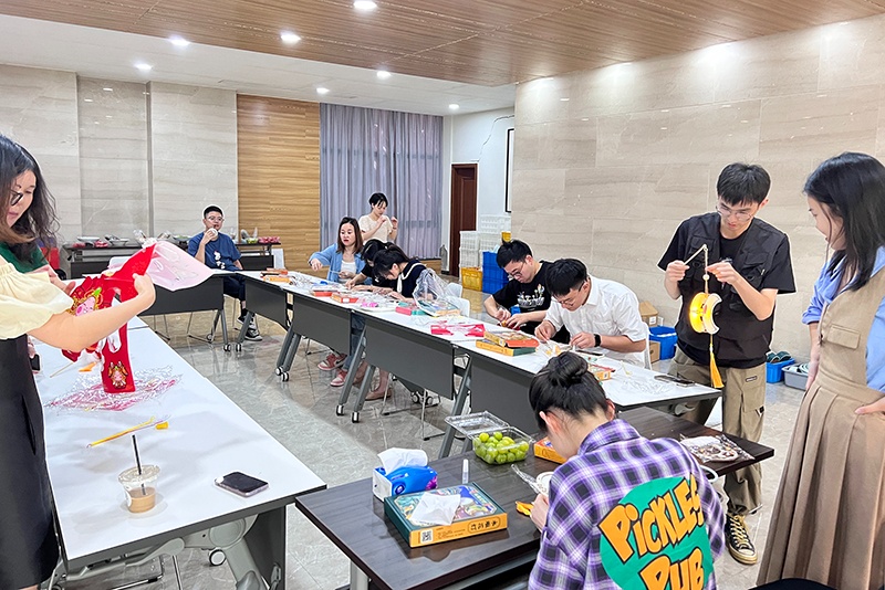 另外,中達(dá)國際生活委員會(huì)準(zhǔn)備了DIY花燈的制作材料,大家積極參與,通過視頻講解拼裝花燈的注意事項(xiàng)和具體步驟,紛紛上手制作花燈,制作的同時(shí)還不忘互相交流技巧,互幫互助的方式讓復(fù)雜的花燈制作流程變得簡單起來,些許時(shí)間,一盞盞花燈便悄然出現(xiàn)。