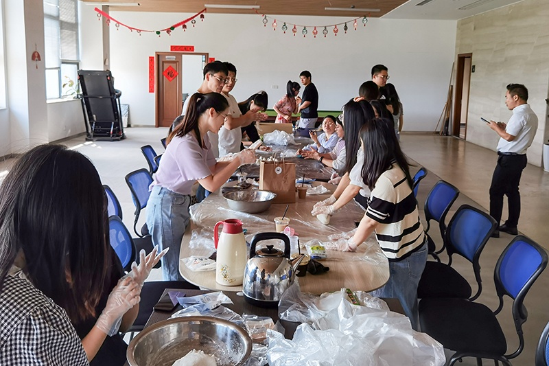 在自制冰皮月餅的活動(dòng)現(xiàn)場,大家迫不及待親自動(dòng)手,“揉、壓、包、印”大家相互探討、互相分享各自的制作方法和技巧,其樂融融。雖然大家都是第一次動(dòng)手做月餅,但都興致盎然,使整個(gè)活動(dòng)現(xiàn)場熱鬧非凡。
