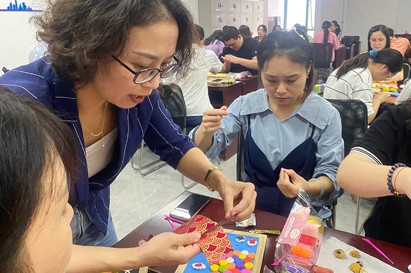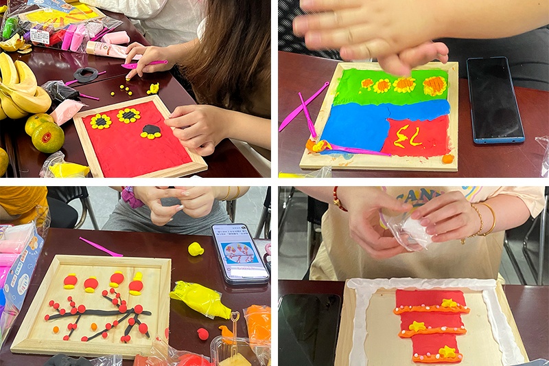 觀影結(jié)束后,同志們熱血沸騰、滿懷激情,親自動手制作國慶主題粘土畫,表達著對祖國深情的熱愛與祝福。大家用粘土勾勒紅色印記,用色彩點燃愛國情懷,用掌心和滿懷愛心描繪了一個又一個燦爛美好的中國夢。