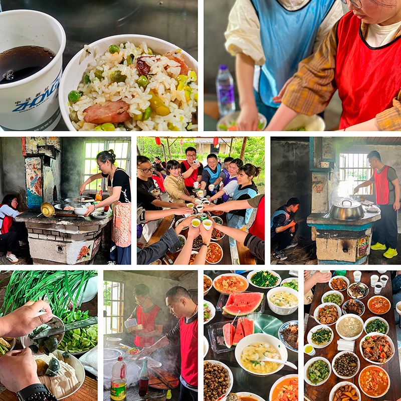 中午,大家體驗了一把老底子的土灶鐵鍋烹美食。當天,大家紛紛貢獻出自家菜園里的新鮮蔬菜,在各小隊長的分配下,隊員們各司其職,生火、洗菜、配菜、掌勺,“廚藝爭霸賽”有條不紊地進行著。經(jīng)過個把小時的戰(zhàn)斗,滿滿一桌色香味俱全的飯菜飄香滿屋。大家享用著自己的勞動成果,感受片刻清閑。