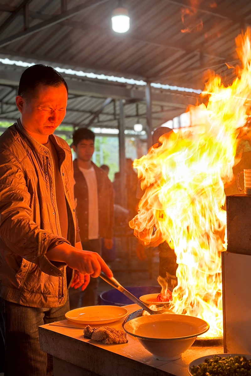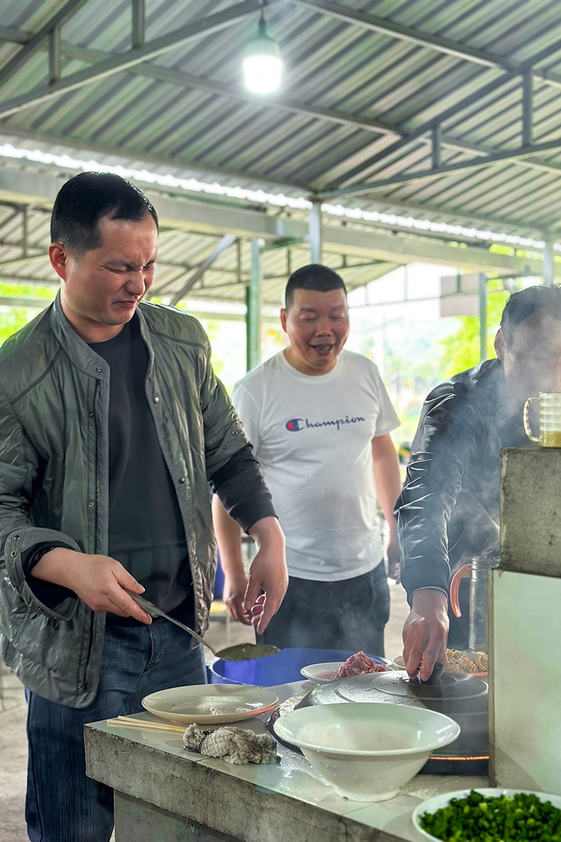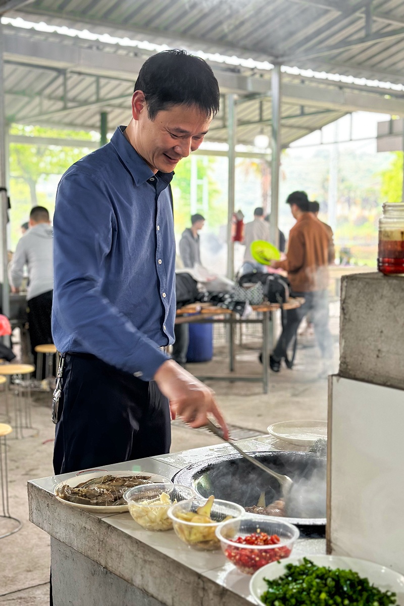 中午,大家按需求和個人所長分工合作,前期準備、中間烹調(diào)、后期衛(wèi)生保潔都有條不紊,事務(wù)瑣碎、工程浩大的土灶燒野米飯極富樂趣。伴隨著柴火燃燒的噼里啪啦聲,大廚們展示出不同的料理方式和技藝,土灶成為閃亮的表演舞臺。濃濃的香味刺激著味蕾,大家吃著野米飯、喝著飲料,你一言、我一語地聊著工作和生活中遇到的各種趣事,其樂融融。