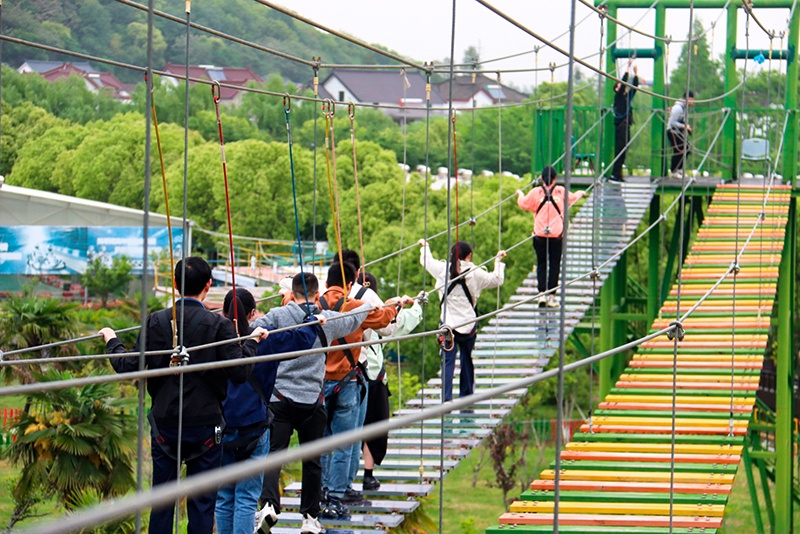 一下午的快樂時光在各種團隊協(xié)作游戲中流淌。伴隨著發(fā)動機的怒吼,一輛輛卡丁車疾馳賽道。油門轟鳴、加速轉(zhuǎn)彎、漂移摩擦,有趣刺激的卡丁車體驗不僅鍛煉了大家的專注力、判斷力,還提高了身體協(xié)調(diào)性。在玻璃和木板鋪設(shè)的吊橋上,大家互相幫助、鼓勁,這項高空刺激挑戰(zhàn)活動既可以鍛煉膽量、激發(fā)勇敢,又能讓人忘卻煩惱、愉悅身心。最后,在中和化學工程總經(jīng)理沈葉飛的帶領(lǐng)下,團隊來到了高空漂流的最頂處,大家全副武裝、蓄勢待發(fā)。隨著工作人員將一艘艘漂流船放入水中,大家乘著皮艇順流而下,穿梭在蜿蜒流動的玻璃道中,四面青山環(huán)繞、鳥語花香,這段驚險刺激的漂流行程為本次團建拓展活動畫上了圓滿的句號。