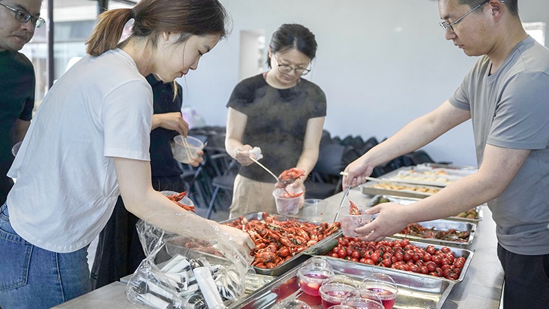 本次活動(dòng)共設(shè)套圈、肖像畫、釣龍蝦、扔沙包、乒乓進(jìn)杯和旱地冰壺六大項(xiàng)目,大朋友和小朋友們一起歡樂游戲、默契十足。公司里回蕩著加油聲、歡笑聲,孩子們興趣盎然,家長(zhǎng)們也樂在其中。玩累了,大家便坐下來享受美食,享受獨(dú)屬親子間的溫馨時(shí)光。