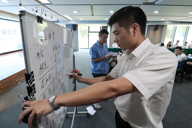 前期,中達(dá)青年們經(jīng)歷自主報名、資料審核和面試等環(huán)節(jié),最終有21位學(xué)員成功加入“閃耀一期”。開班儀式上,各位學(xué)員從基本信息、工作經(jīng)歷、花名和興趣愛好等方面做了細(xì)致的自我介紹,用最簡短的方式讓大家認(rèn)識并記住自己。