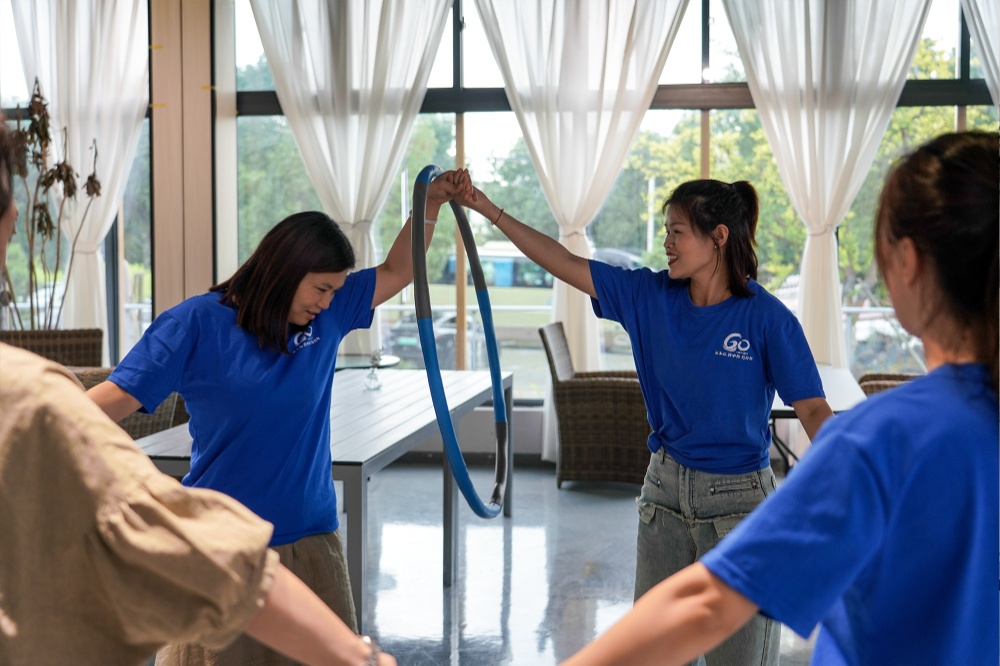 隨后開啟“一圈到底”游戲環(huán)節(jié),是對團(tuán)隊(duì)默契和協(xié)作的極限挑戰(zhàn)?,F(xiàn)場瞬間燃起青年熱情,參與者們緊密配合,共同面對一系列刺激的挑戰(zhàn)。每一個(gè)成功瞬間都會引爆歡聲;而每次的小挫敗,則化為推進(jìn)的動力,激發(fā)出更加堅(jiān)韌的斗志。這一環(huán)節(jié)完美地融合了趣味與合作,展現(xiàn)了中達(dá)集團(tuán)員工間的緊密紐帶和共同前行的決心。