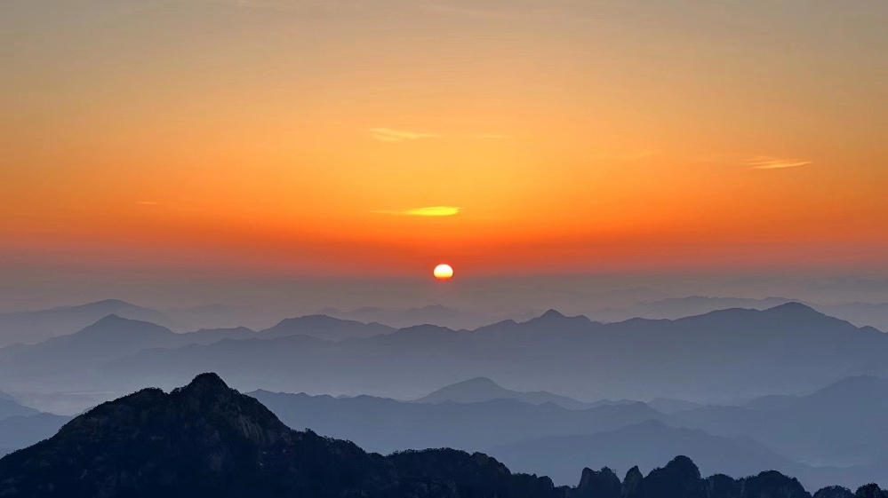 次日凌晨四點,閃耀青年們都早早起床觀看日出,此時山頂早已人山人海,期待日出的美景。太陽的升起讓黑暗天空猛地裂開一道口子,山谷亮堂了起來,云海、蟲鳴、鳥啼都變得清晰起來,一切都散發(fā)著生機。在黃山看日出,心曠神怡,讓人充滿希望與光明,希望我們每個人都能像初升的太陽,永遠充滿朝氣。