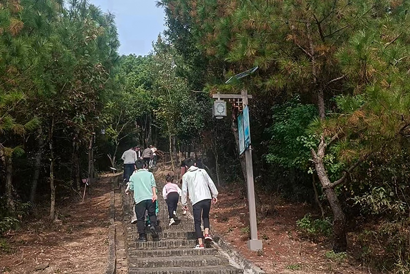 青年員工們一步一步地往上攀登,汗水滴落在地面上,呼吸急促卻充滿活力。經(jīng)過1個多小時的跋涉,大家來到了山頂。站在高處俯瞰山下,一片片農(nóng)田和村莊盡收眼底,讓人心曠神怡,同時感受到自己的渺小與大自然的力量。