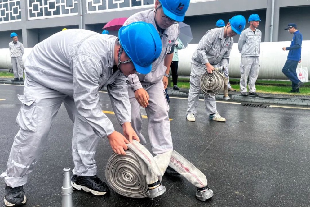 此次比賽共有三個(gè)團(tuán)隊(duì),分別是行政隊(duì)、技術(shù)檢修隊(duì)、生產(chǎn)隊(duì)。項(xiàng)目共兩項(xiàng),第一項(xiàng)進(jìn)行的是2人組60米滅火,兩人分別使用干粉滅火器、滅火毯滅火;第二項(xiàng)進(jìn)行的是4人組二盤水帶連接出水消防滅火基本科目演練。在整個(gè)消防演練過(guò)程中,每位員工情緒飽滿、積極參與、揮汗奔跑,有序完成了一項(xiàng)又一項(xiàng)的滅火任務(wù)。最終,技術(shù)檢修隊(duì)綜合所用時(shí)間最短,獲得了本次比賽的第一名。