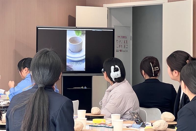 活動開始,陶藝老師先讓大家觀看了簡要的陶藝制作步驟視頻,再細致講解示范制作過程中的工藝及技巧。公司女工們認真聆聽操作步驟和注意事項,仔細觀摩操作細節(jié)。